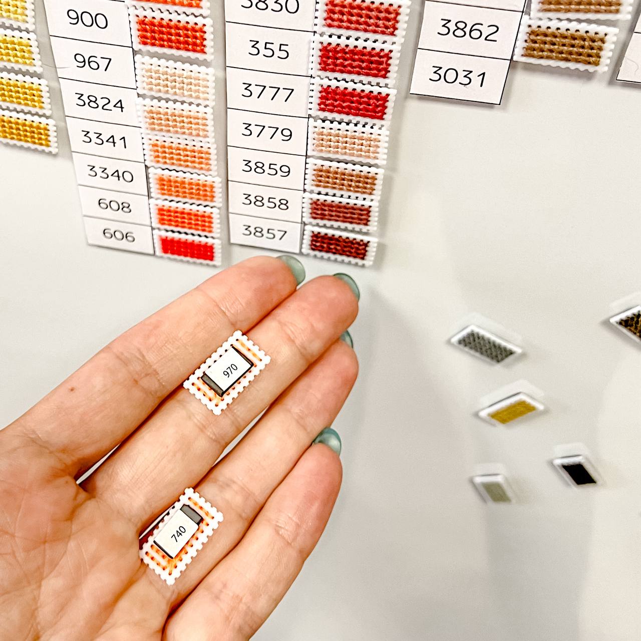 Не делайте карту с вышитыми номерками. Только «голый» квадратик цвета. А номер клеим сзади. Обычные наклейки на бобинки прекрасно держатся 👍🏻